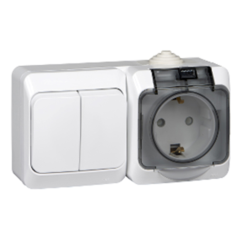 • Этюд iр44 о/у блок: роз. з/к со шт. 16А 250B, выкл.2-клав.10А, белый, россия SE