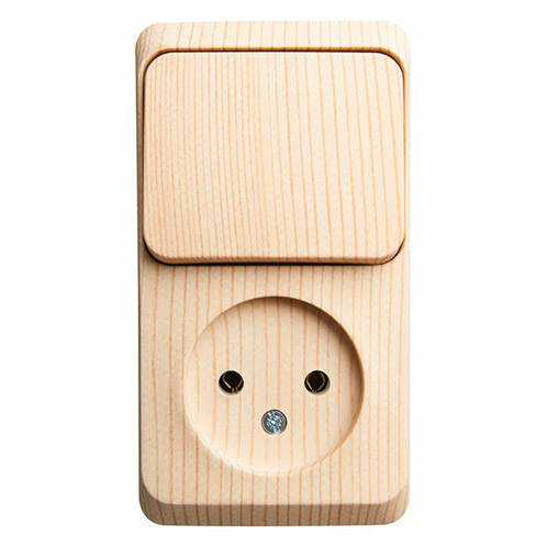 • Этюд о/у блок: Розетка с заземлением со шт. + Выключатель 1-клавиш., сосна, SE