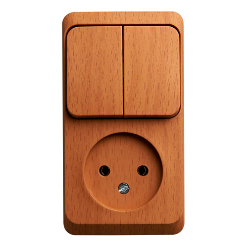 • Этюд о/у блок: Розетка с заземлением со шт. + Выключатель 2-клавиш., сосна, SE
