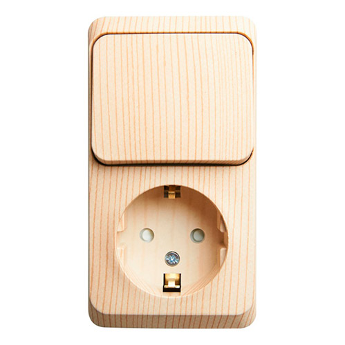 • Этюд о/у блок: Розетка с заземлением со шт. + Выключатель 1-клавиш., сосна, SE
