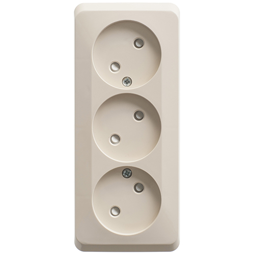 Этюд о/у тройная Розетка без заземления со штороками 16А 250B, кремовый, россия SE PA16-010K