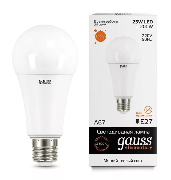 Вы можете купить Лампа светодиодная E27 180-240В 25Вт 3000К Gauss Elementary в интернет-магазине «РКМ Электро» по цене 430 руб.. На странице имеется подробная информация о товаре: