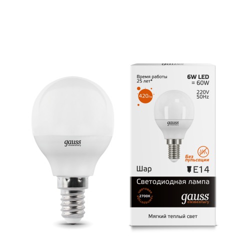 Лампа светодиодная E27 180-240В 6Вт 3000К Gauss Elementary 53216