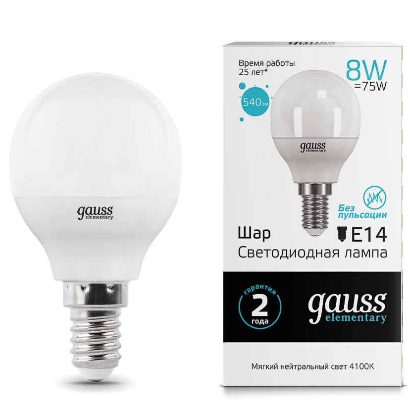 При наличии Лампа светодиодная Е14 180-240В 8Вт 4100К Gauss Elementary на складе и оформлении заказа до 16:00 - доставка или самовывоз через один рабочий день.