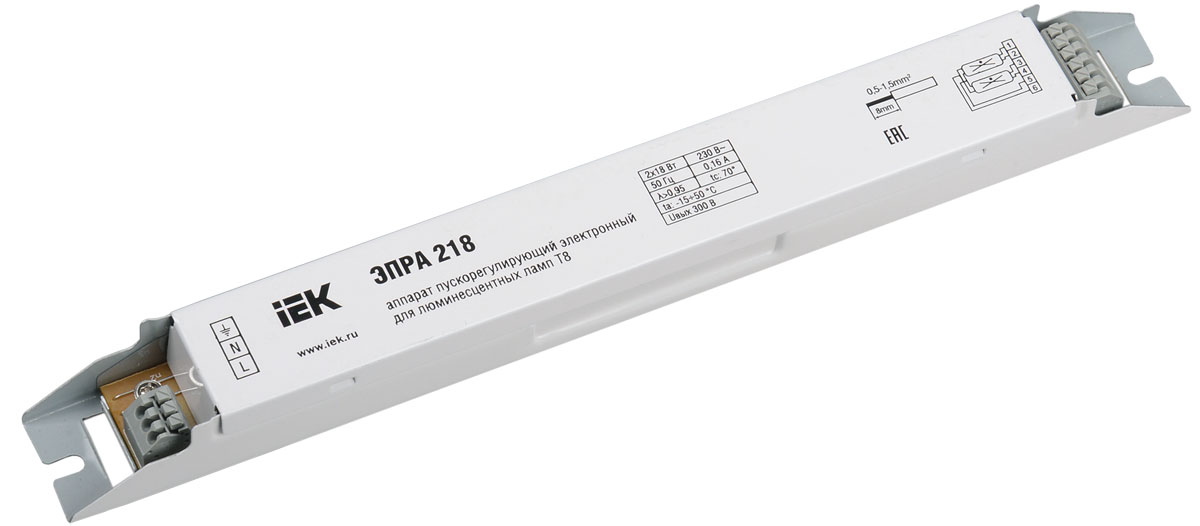 Вы можете купить ЭПРА 218 для линейных ЛЛ Т8, 2х18W, 280x30x25мм, IP20 IEK в интернет-магазине «РКМ Электро» по цене 709 руб.. На странице имеется подробная информация о товаре: