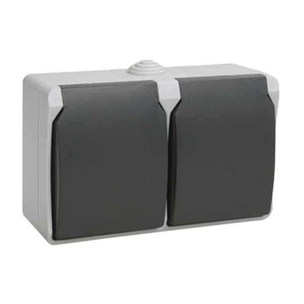 • Розетка открытой установки с заземлением двойная с крышкой 16A IP54 серый IEK Форс РСб22-3-ФСр