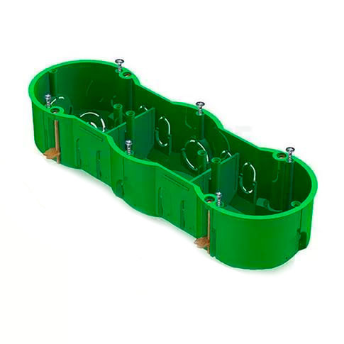 • Коробка установочная 3-местная для полых стен (с саморезами и метал.лапками) 212х70х45мм, IP20 / зеленый IEK КМ40024