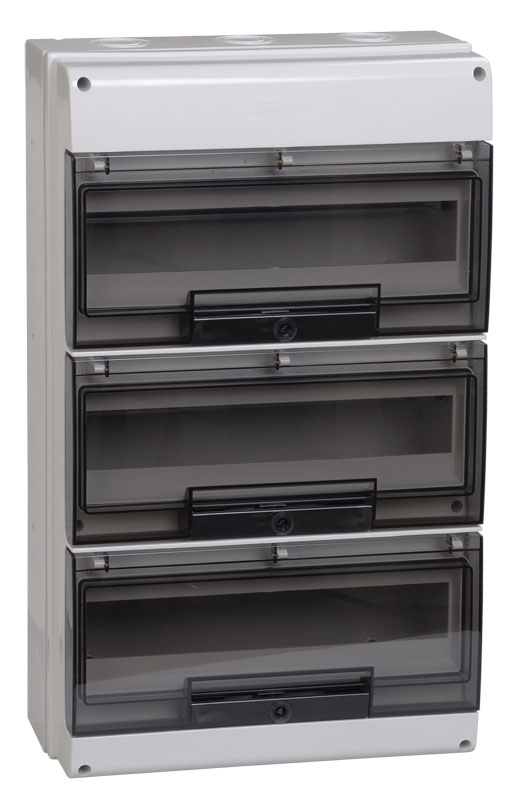 • Бокс модульный пластиковый навесной с тремя дверцами 306х458х108, 3Pяда/36мод, IP55 IEK КМПн-36