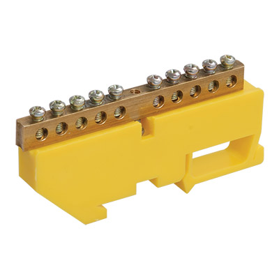 • Шина PE "земля" с DIN-изолятором 12отв, 100A, на DIN-рейку, 90мм / желтый IEK ШНИ-6х9-12-Д-Ж