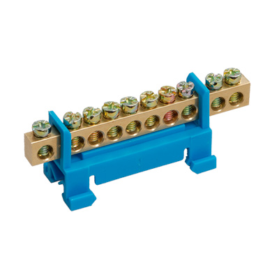 • Шина N "ноль" с DIN-изолятором 10отв, 100A, на DIN-рейку, 78мм / синий IEK ШНИ-6х9-10-Д-С