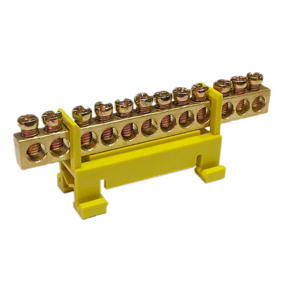 • Шина PE "земля" с DIN-изолятором 12отв, 100A, на DIN-рейку, 90мм / желтый IEK ШНИ-6х9-12-Д-Ж