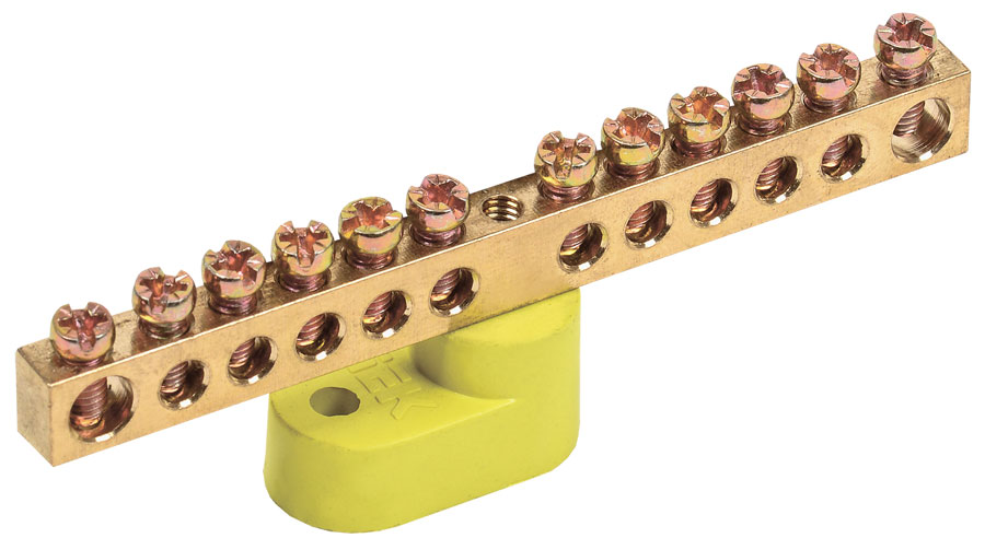 Шина N "земля" на одном угловом изоляторе 12отв, 100A, монтаж винт, 90мм / желтый IEK ШНИ-6х9-12-У1-Ж YNN10-69-12C1-K05
