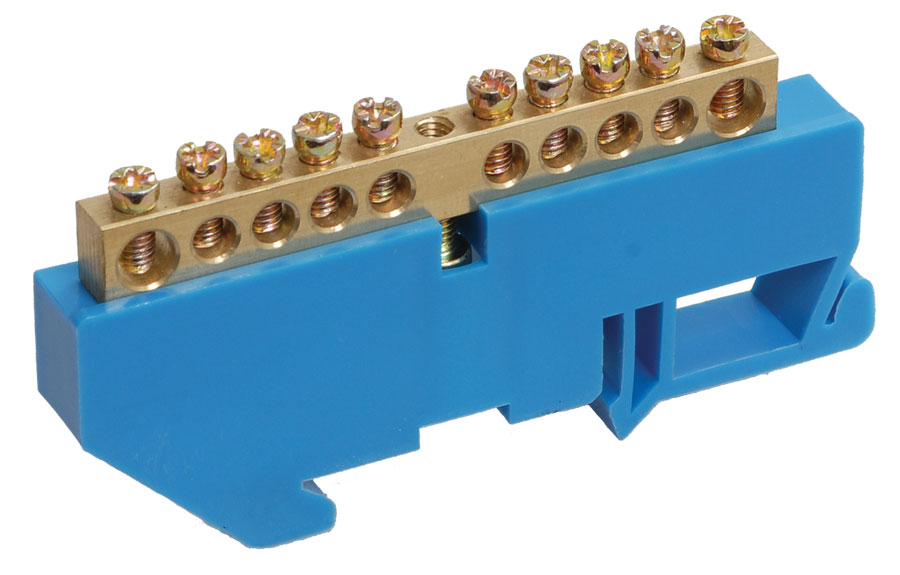 • Шина N "ноль" с DIN-изолятором 10отв, 125A, на DIN-рейку, 91мм / синий IEK ШНИ-8х12-10-Д-С