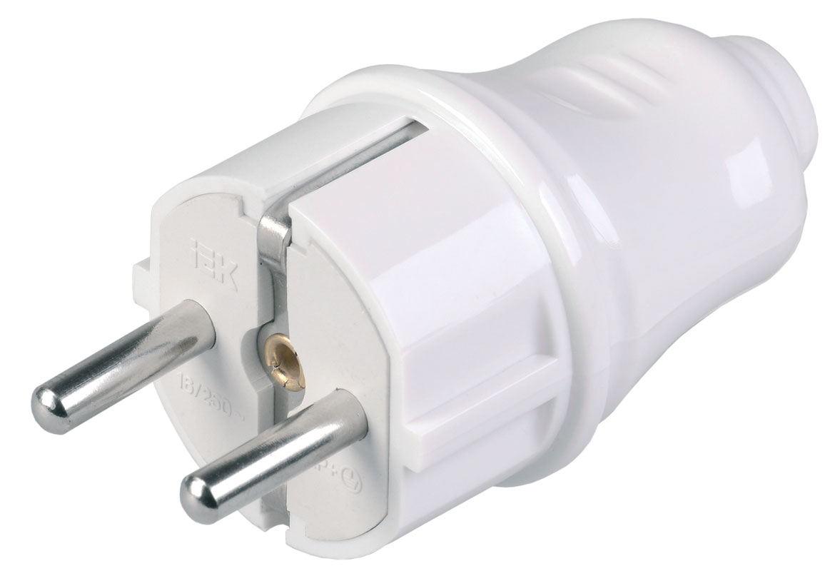 • Вилка прямая разборная с заземлением 16A белая IEK ВПп10-01-Ст