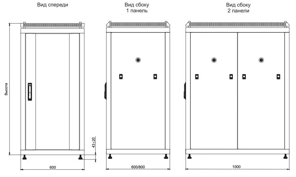 • Шкаф сетевой 19" LINEA N 42U 600х1000мм перфорированная передняя дверь черный ITK