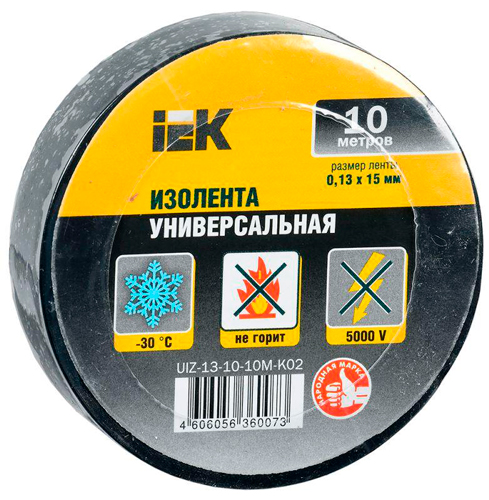 • Изолента 0,13х15 мм черная 10 метров IEK IEK  UIZ-13-10-10M-K02