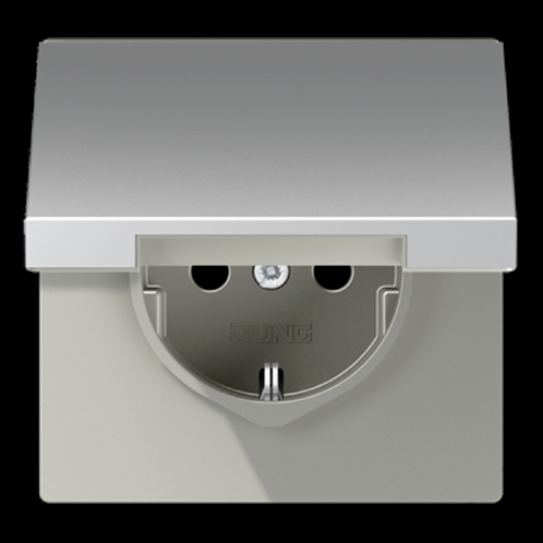 Механизм Розетка с заземлением с крышкой безвинт зажим Jung Алюминий Dark AL1520KL