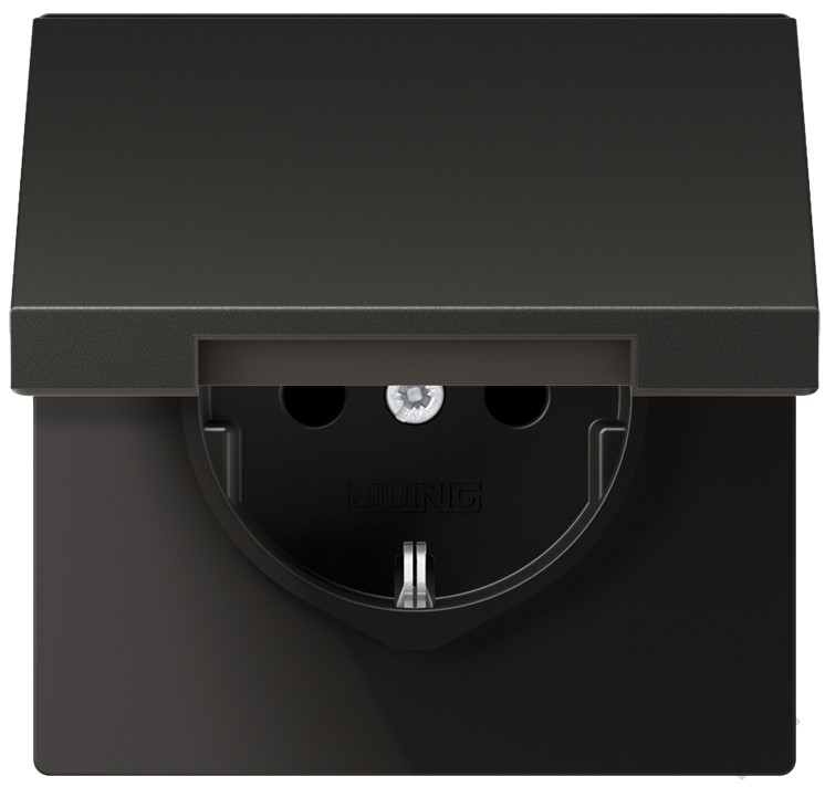 Механизм Розетка с заземлением с крышкой безвинт.зажим Jung Антрацит AL1520KLAN