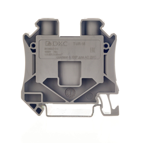 Клемма проходная, винтовой зажим, 2 точки подключения, 16 кв.мм, серая DKC TUR-16