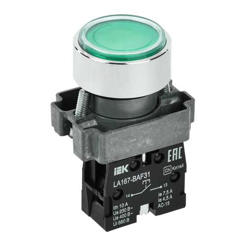 • Кнопка LA167-BAF31 d=22мм 1з зеленая IEK