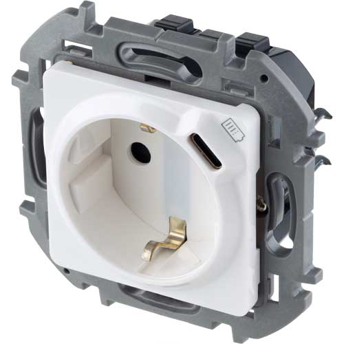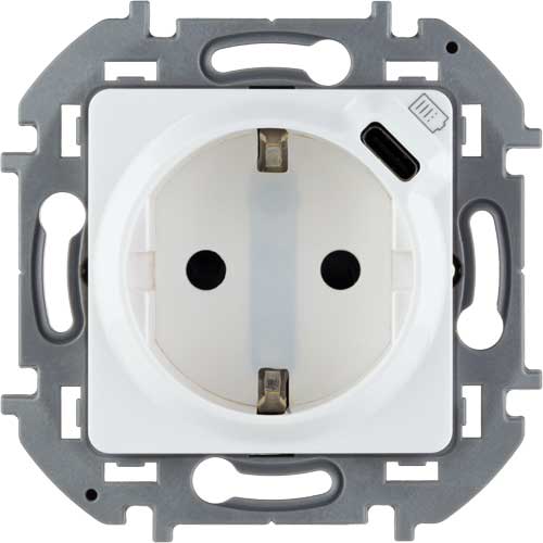 • Комбинированная розетка 2К+З с зарядным устройством USB тип С для скрытого монтажа розетки 16АХ, ~250В, напряжение зарядного устройства =5В, 1500 мА. Legrand Inspiria Белый