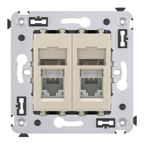 • Компьютерная розетка RJ-45 в стену, кат.6 двойная,"Avanti", "Ванильная дымка" DKC