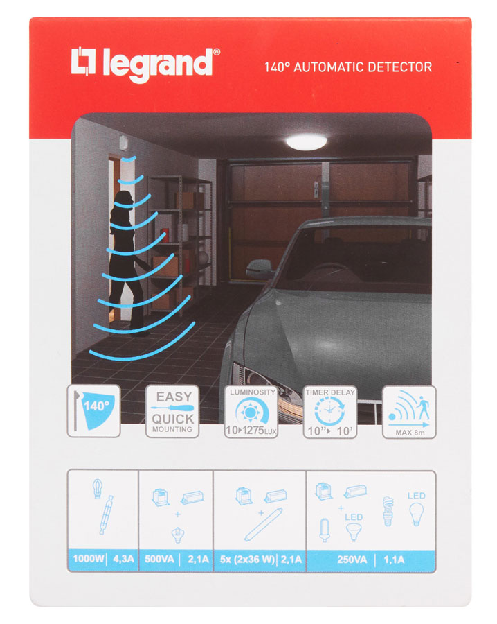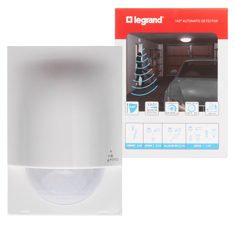 При наличии Датчик движения настенный ИК 140С, 8х4м, 32м2, IP42 / белый Legrand на складе и оформлении заказа до 16:00 - доставка или самовывоз через один рабочий день.