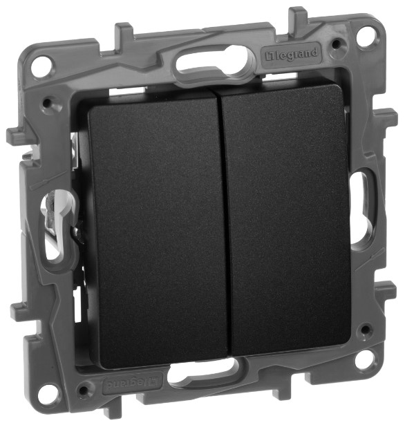 Переключатель 2-клавишный 10A автоматические зажимы Legrand Etika Антрацит 672612