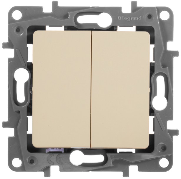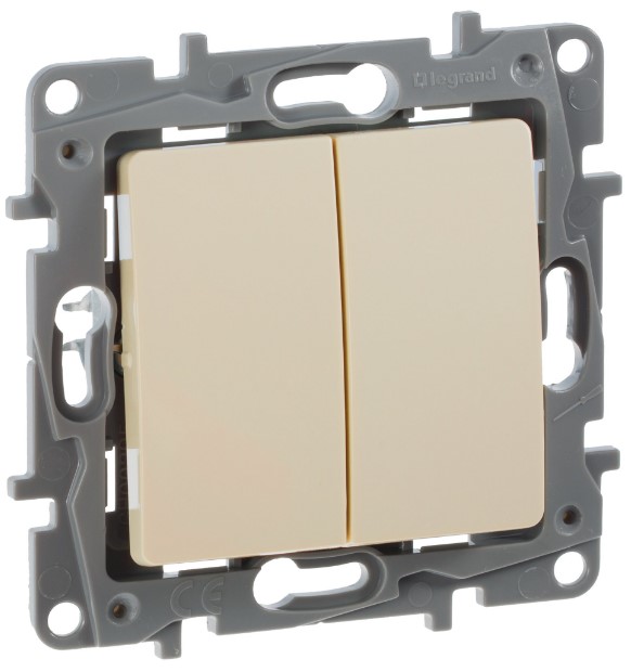 • Переключатель 2-клавишный 10A автоматические зажимы Legrand Etika Cлоновая кость