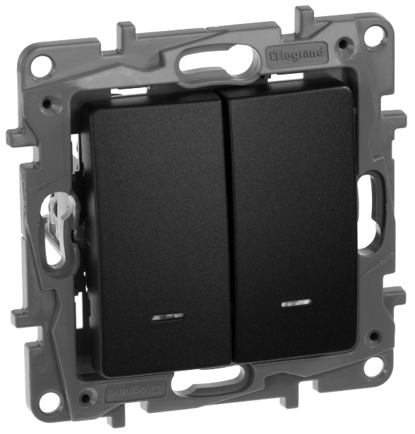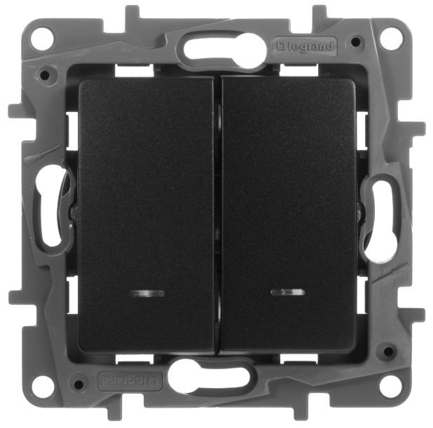 Переключатель 2-клавишный с подсветкой 10A автоматические зажимы Legrand Etika Антрацит 672616