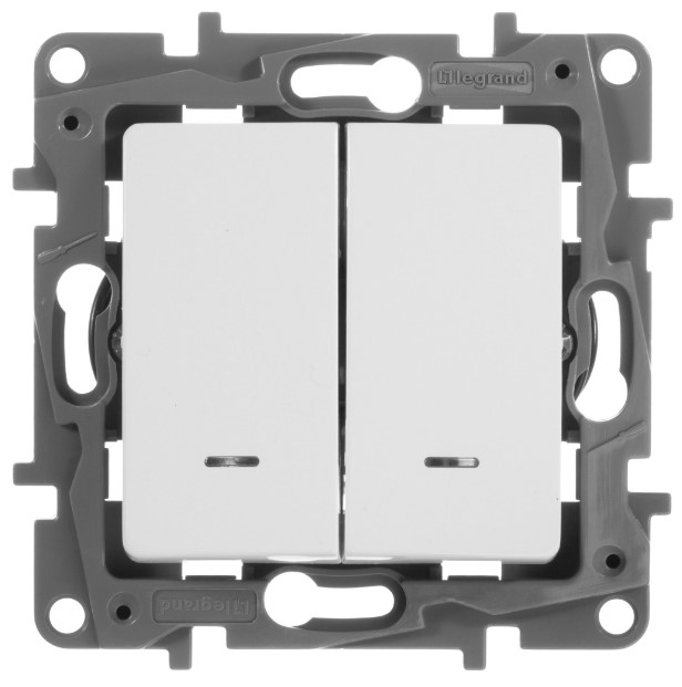 Переключатель 2-клавишный с подсветкой 10A автоматические зажимы Legrand Etika Белый 672216