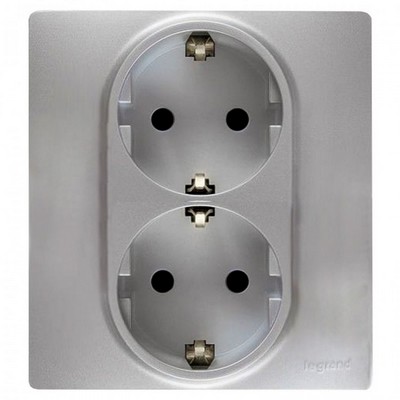 • Розетка 2 x 2К+З немецкий стандарт винтовые зажимы 16 A 250 В~ Legrand Etika Алюминий