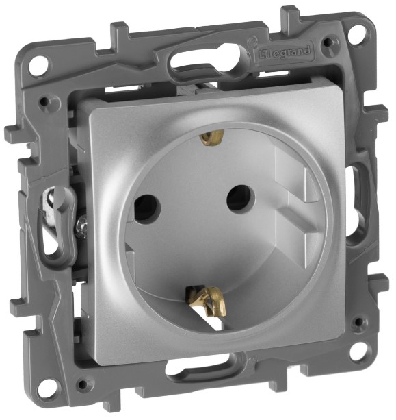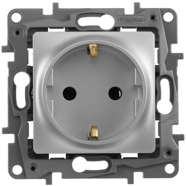 • Розетка 2К+З немецкий стандарт винтовые зажимы 16 A 250 В~ Legrand Etika Алюминий