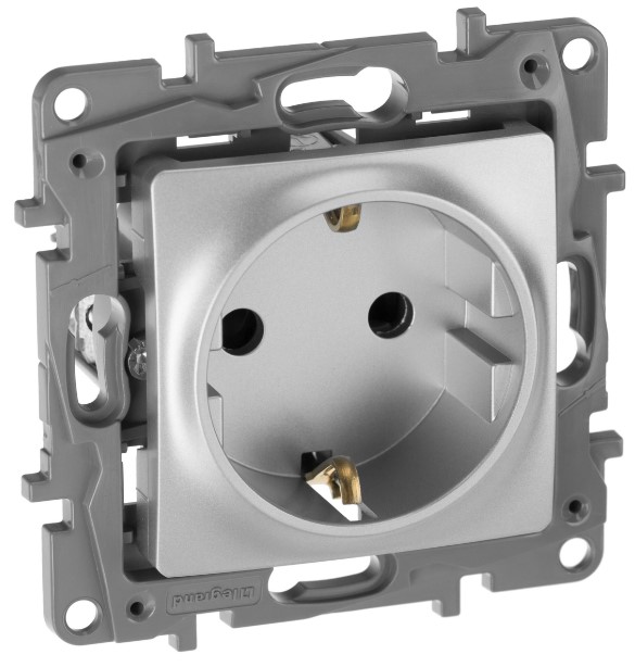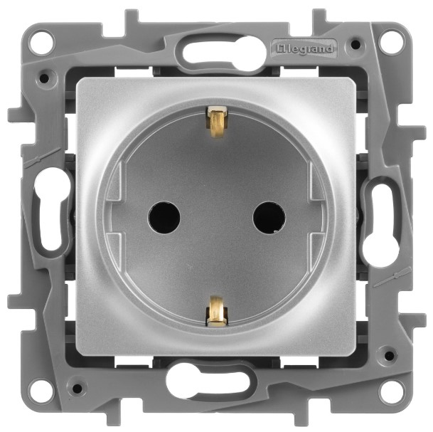 При наличии Розетка 2К+З со шторками немецкий стандарт винтовые зажимы 16 A 250 В~ Legrand Etika Алюминий на складе и оформлении заказа до 16:00 - доставка или самовывоз через один рабочий день.
