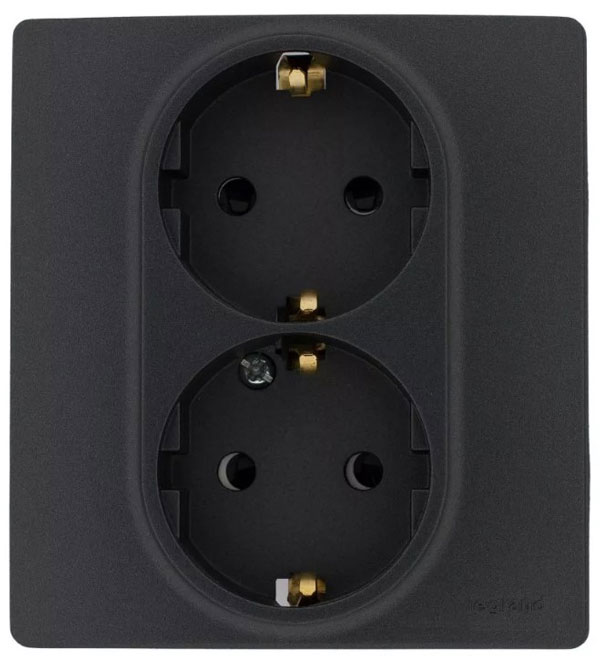 Розетка с заземлением 2-ая немецкий стандарт в сборе с рамкой автоматические зажимы Legrand Etika Антрацит 672633