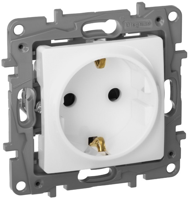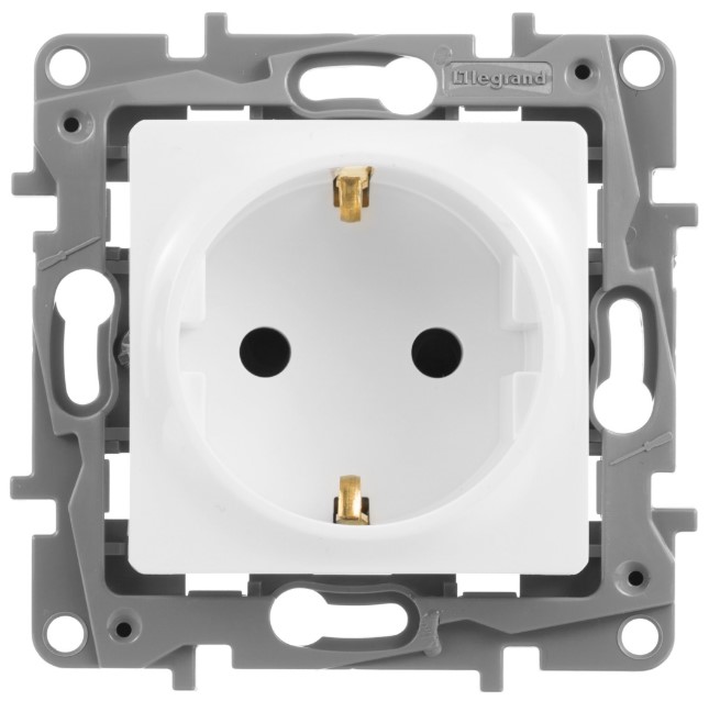 • Розетка с заземлением с защитными штораками немецкий стандарт винтовой зажим Legrand Etika Белый