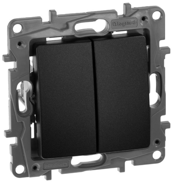 Выключатель двухклавишный автоматические клеммы 10 AX 250 В~ Legrand Etika Антрацит 672602
