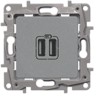 При наличии Зарядное устройство с двумя USB разьемами 240В/5В 2400мА Legrand Etika Алюминий на складе и оформлении заказа до 16:00 - доставка или самовывоз через один рабочий день.