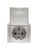 Розетка с заземлением с защитн.шторками с крышкой немецкий стандарт автомат.клеммы Legrand Galea Life Алюминий 771364