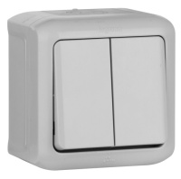 Выключатель 2-клавишный 10A IP44 Legrand Quteo Серый 782332