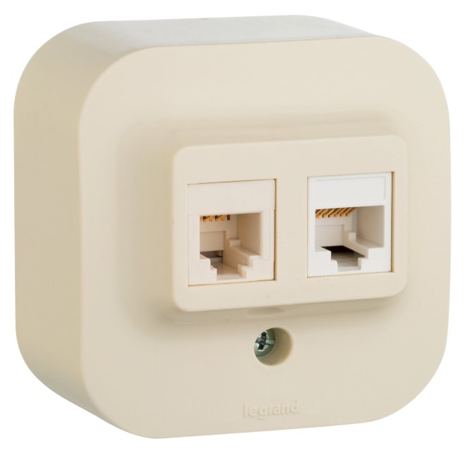 • Розетка RJ11 + RJ45 кат.5е UTP IP20 Legrand Quteo Слоновая кость