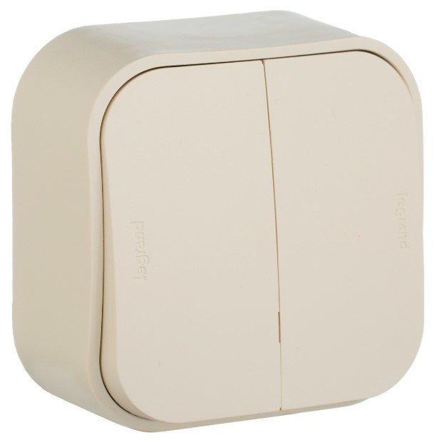 Выключатель 2-клавишный 10A IP20 Legrand Quteo Слоновая кость 782232