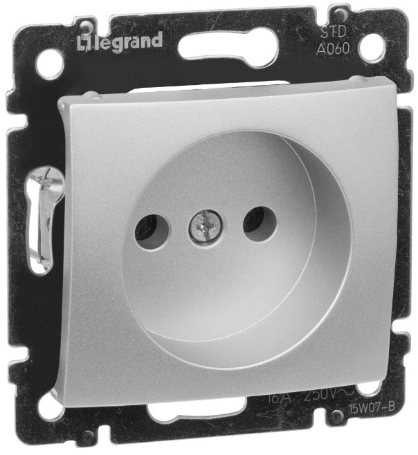 • Розетка без заземления 1-ая винт.зажим Legrand Valena Алюминий