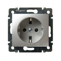 Розетка с заземлением 1-ая безвинт.зажим Legrand Valena Алюминий 770183