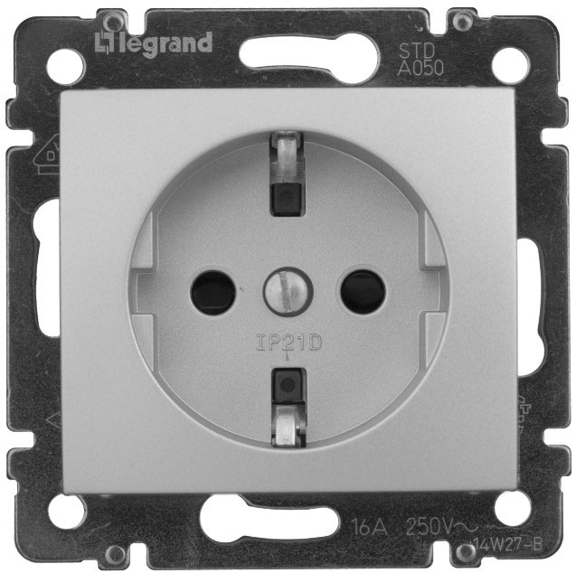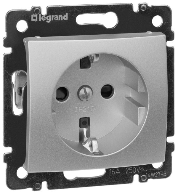 • Розетка с заземлением 1-ая с защитными шторками винт.зажим Legrand Valena Алюминий
