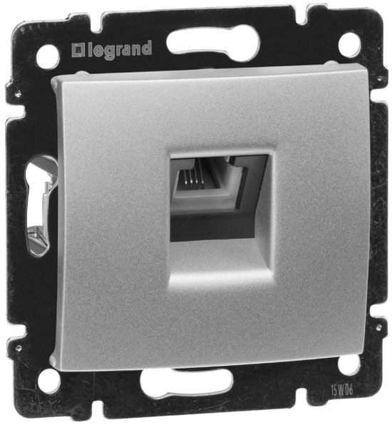 • Розетка телефонная 1-ая RJ11 4 контакта Legrand Valena Алюминий