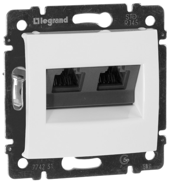 • Розетка информационная 2-ая RJ45 кат.5e UTP на захватах Legrand Valena Белый