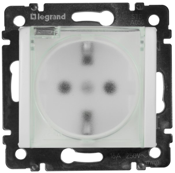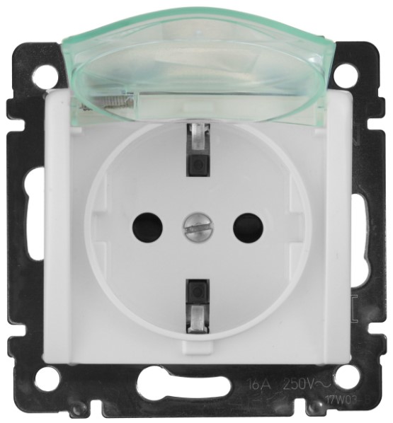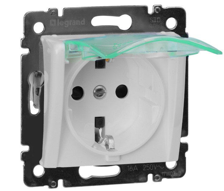 • Розетка с заземлением 1-ая с защитными шторками с крышкой винт.зажим IP44 Legrand Valena Белый