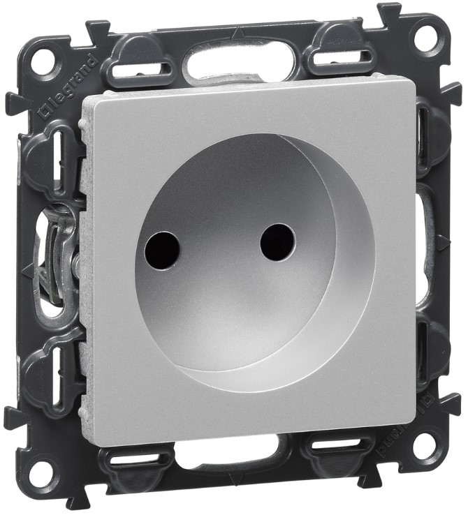Накладка розетки без заземления с защитными шторками Legrand Valena Life Алюминий 754972