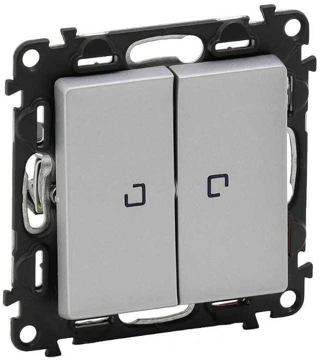 • Выключатель 2-клавишный на 2 направления с подсветкой 10A Legrand Valena Life Алюминий